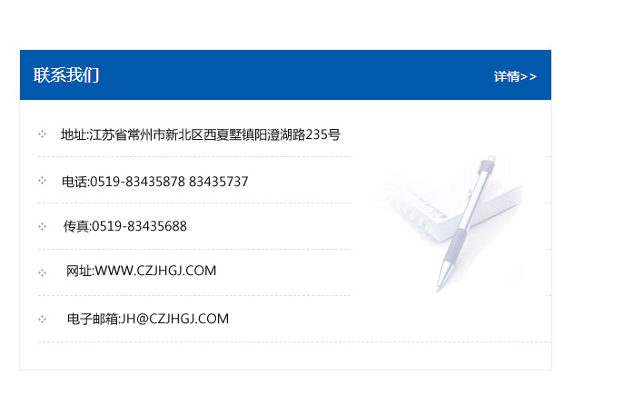 傳真:0519-83435688    郵編:213135    網址:WWW.czjhgj_com.jinlidatex.com    電子郵箱:JH@czjhgj_com.jinlidatex.com